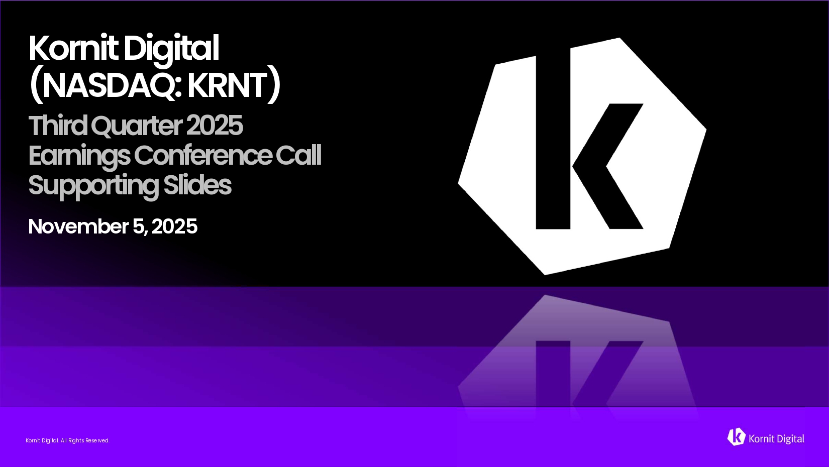 Kornit Digital. All Rights Reserved. Kornit Digital. All Rights Reserved. Kornit Digital (NASDAQ: KRNT) Third Quarter 2025 Earnings Conference Call Supporting Slides November 5, 2025 Kornit Digital. All Rights Reserved.