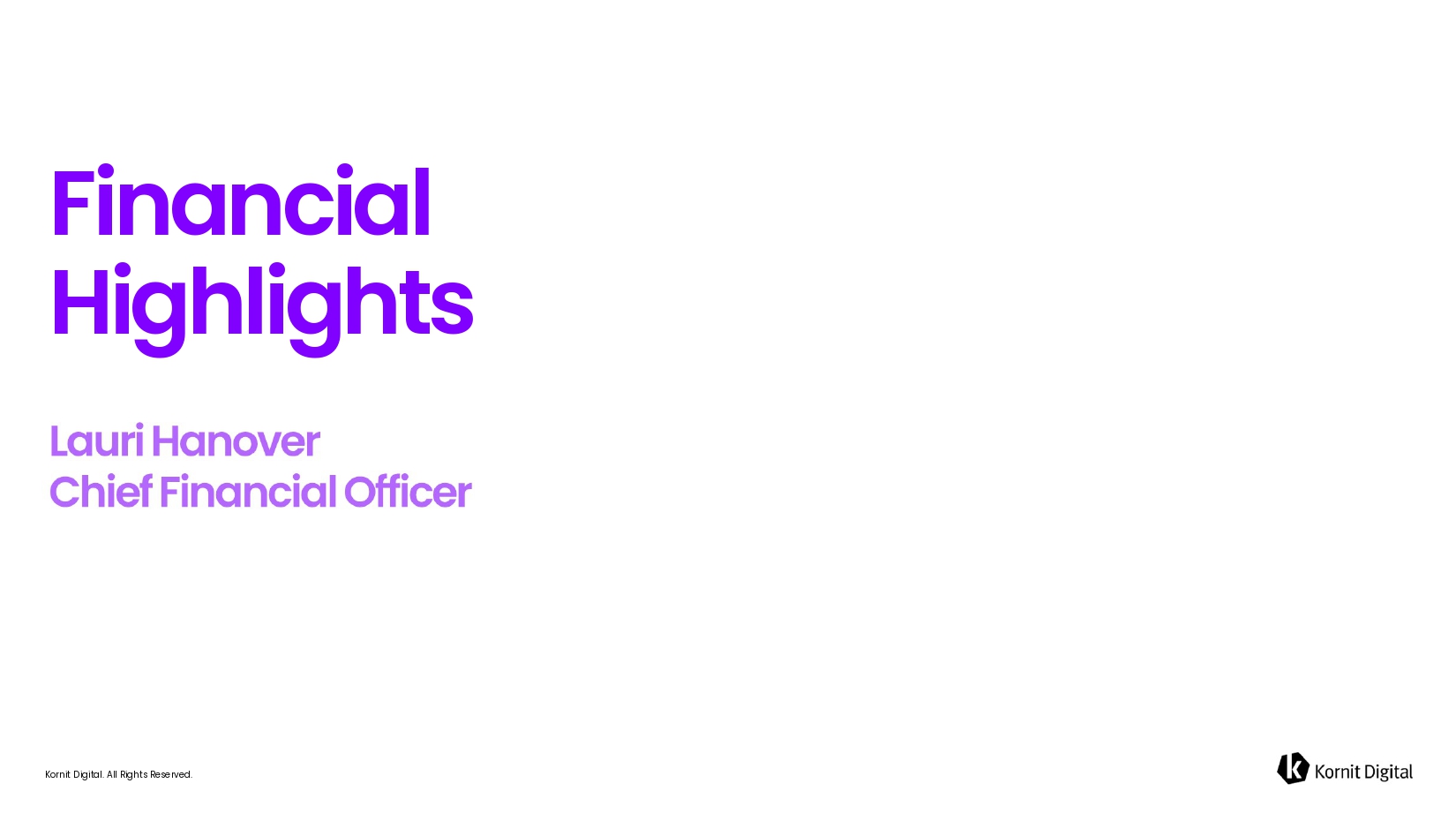 Kornit Digital. All Rights Reserved. On Today ’ s Call Ronen Samuel CEO Lauri Hanover CFO Jared Maymon Investor Relations