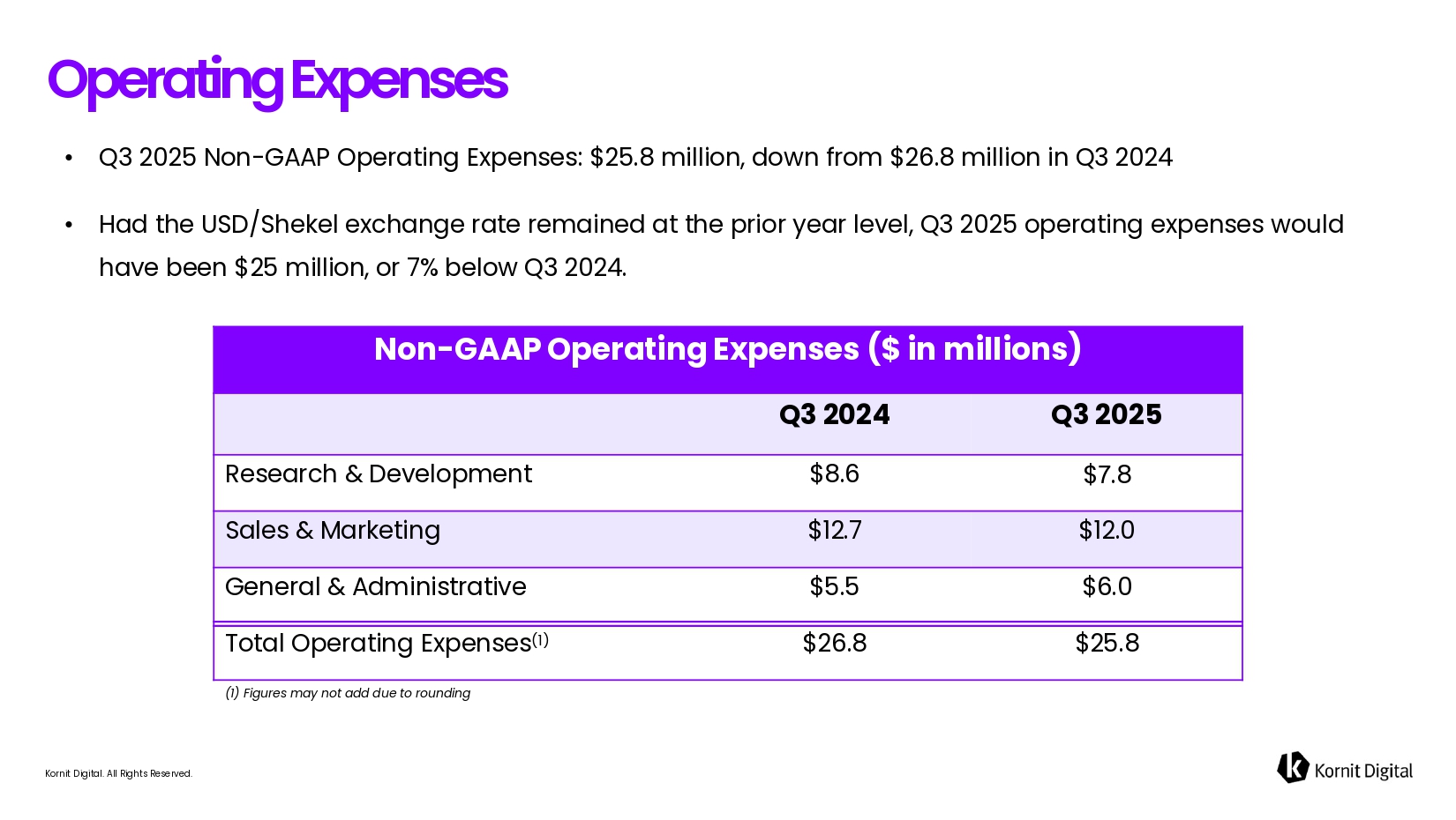 | ● | GAAP operating expenses for the third quarter of 2025 were $31.1 million compared with $31.3 million in the prior year period. On a non-GAAP basis, operating expenses decreased by 3.7% to $25.8 million compared with the prior year period. |